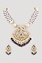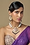 Featuring a gold finish long necklace studded with amethyst, polki diamonds, beads and pearls, set in copper. It is paired with a matching pair of earrings. Add a touch of sparkle to your ensemble, perfect for wedding ceremonies, special occasions or festive celebrations.
