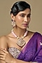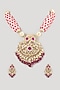 Featuring a gold finish long necklace studded with polki diamonds, ruby, beads and pearls, set in copper. It is paired with a matching pair of earrings. Add a touch of sparkle to your ensemble, perfect for wedding ceremonies, special occasions or festive celebrations.
