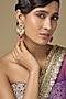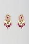 Featuring a pair of gold finish dangler earrings studded with polki, ruby and pearls, set in copper. Add a touch of sparkle to your ensemble, perfect for wedding ceremonies, special occasions or festive celebrations.