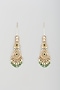 Featuring a pair of gold finish dangler earrings studded with uncut polki diamonds, green emerald drops and pearls, set in copper. Add a touch of sparkle to your ensemble, perfect for wedding ceremonies, special occasions or festive celebrations.