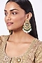 Featuring a pair of 22 Kt gold plated chandbali earrings studded with pearl drops, kundan polki, and green onyx, set in copper.