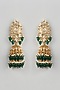 Featuring a pair of 22kt gold plated jhumka earrings studded with kundan polki and green onyx beads, set in copper.