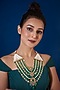 Featuring a 22 Kt gold plated layered necklace studded with semi-precious kundan polki and onyx, set in copper.