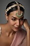Featuring a 22kt gold plated mathapatti studded with kundan polki, pearl jaal patti and onyx, set in copper. Perfect for festive or wedding ceremonies.
