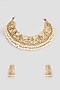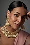 Featuring a 22kt gold plated choker necklace studded with kundan polki, beads and pearls, set in copper. It is paired with a matching pair of earrings. Perfect for festive or wedding ceremonies.