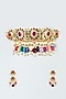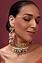 Featuring a 22kt gold plated choker necklace studded with navratna stones, pearls and kundan polki, set in copper. It is paired with a matching pair of earrings.