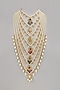 Featuring a 22kt gold plated sathlada necklace studded with navratan stone, set in copper. The seven rows of necklaces is Perfect for festive or wedding ceremonies.