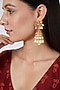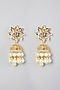 Featuring a pair of 22 Kt gold plated jhumka earrings studded with pearls and semi precious stones, set in copper.