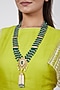 Featuring a 22 Kt gold plated necklace studded with kundan, pearls, and green oxyn, set in copper.