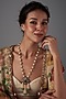 Featuring a 24kt black rhodium plated long necklace studded with moissanite polki, freshwater pearls and green berrel stones, set in 92.5 sterling silver. Perfect wear for festive occasions or wedding ceremonies.