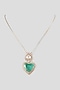 Gold Finish Diamond & Heart-Shaped Emerald Doublet Stone Pendant Necklace In Sterling Silver