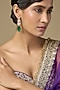 Featuring a pair of gold finish dangler earrings studded with kundan polki, diamond and teardrop emerald green stone, set in 92.5 sterling silver. Add a touch of sparkle to your ensemble, perfect for wedding ceremonies or festive celebrations.