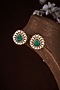 Featuring a pair of 24kt gold plated stud earrings studded with moissanite polki, green onyx and freshwater pearls, set in 92.5 sterling silver. Perfect wear for festive occasions or wedding ceremonies.