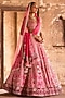 Deep Pink Linen Satin Pearl & Zardosi Embroidered Lehenga Set