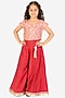 Featuring a pink crop top in silk blend base with embroidery. It is paired with matching flared palazzo pants.