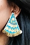 Featuring a pair of turquoise handcrafted earrings with antique sequins work. Add a touch of sparkle to your ensemble, perfect for wedding ceremonies, special occasions or festive celebrations.