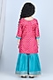 Featuring a pink and blue kurta in pure cotton base with floral print, embroidery and embellishments. It is paired with matching sharara pants.