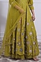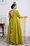 Featuring an olive green anarkali in chanderi and tulle base with 3D floral, cutdana, and sequins hand embroidery. It is paired with a matching organza cutwork dupatta.