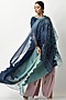 Featuring an aqua and navy drape in pleated polyester mix base with batik print and embroidery. This contains only one piece.