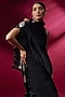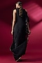 Featuring a black dress in pleated polyester and glass nylon base with scalloped detail. It is paired with a drape. Accentuate it with statement heels and bold earrings for a sleek, contemporary look, perfect for cocktail parties, evening events or formal dinners.