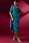 Featuring a blue draped dress in pleated polyester base. Accentuate it with fitted pants, statement earrings and heels for a bold, modern look, perfect for evening parties or brunches.