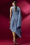 Featuring a blue draped tunic in pleated polyester base. Accentuate it with fitted pants, statement earrings and heels for a bold, modern look, perfect for evening parties or brunches.