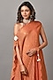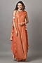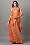 Featuring a gold dress in jersey base with collar detail. It is paired with a soft coral pleated drape. Accentuate with statement jewellery and heels for evening wear or cocktail ceremony.