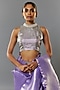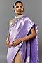 Featuring a lavender and gold saree in net and pleated polyester base with embroidery. It is paired with a woven brocade blouse. Accentuate with statement earrings and heels for festive occasions or wedding ceremony.