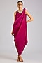 Featuring a magenta pink dress in polyester base. It is paired with a drape. Accentuate it with statement drop earrings, a textured clutch and strappy heels for a stylish ensemble, ideal for cocktail parties or evening celebrations.