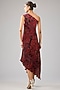 Maroon Pleated Polyester Digital Printed One-Shoulder Dress