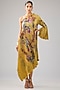Featuring a mustard pleated one-shoulder dress in pleated polyester base with floral print. Accentuate it with minimal jewellery and strappy heels to let the colours and silhouette stand out, perfect for cocktail nights, destination events, and modern pre-wedding celebrations.