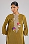 Featuring a mustard kurta in pleated polyester viscose base. Style it with pants, dangler earrings and block heels for festive gatherings or pooja ceremony.