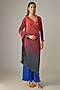 Red Ombre & Indigo Blue Pleated Polyester Co-Ord Set