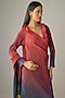 Featuring a red ombre wrap top in pleated polyester base with tassels detail. It is paired with indigo blue pants. Accentuate it with zircon dangler earrings, a clutch and metallic heels for a cocktail, sangeet or evening soirees.