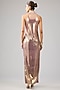 Featuring a smokey gold maxi dress in pleated polyester base with motif and tassels detail. It is paired with a smokey grey pleated drape. Accentuate it with minimal jewellery and strappy heels to let the colours and silhouette stand out, perfect for cocktail nights, destination events, and modern pre-wedding celebrations.