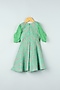 Aqua Green Printed & Embroidered Jumpsuit With Sling Bag For Girls