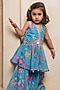 Blue Shantoon & Tabby Organza Printed Skirt Set For Girls