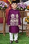 Deep Purple Dola Silk & Cotton Silk Embroidered Nehru Jacket Set For Boys