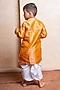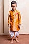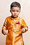 Golden Orange Brocade Silk Embroidered Kurta Set For Boys