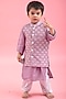 Lavender Cotton Silk Embroidered Bundi Jacket With Kurta Set For Boys