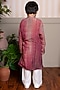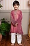 Maroon & Pink Crush Tissue Embroidered Ombre Kurta Set For Boys