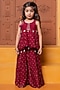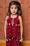 Featuring a maroon peplum kurta in pure chanderi silk base with print. It is paired with a printed and embroidered skirt. Accessorize it with matching hair accessories and sandals for a stylish ensemble, ideal for any birthday party.