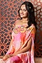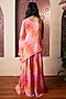 Featuring a multi-colored asymmetrical cape for girls in satin organza crepe base with one shoulder attached drape, print and embroidery. It is paired with a crop top and sharara pants having print and embroidery. Style it with cute hair accessories and sandals for a festive occasion or wedding ceremony.