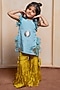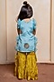 Featuring a pastel blue kurta in premium crepe base with embroidery. It is paired with crepe chinon mustard yellow sharara pants. Accessorize it with matching hair accessories and sandals for a stylish ensemble, ideal for any birthday party.