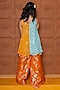 Featuring a pastel blue and mustard kurta in silk brocade and georgette base with embroidery. It is paired with embroidered orange brocade silk sharara pants. Accessorize it with matching hair accessories and sandals for a stylish ensemble, ideal for any birthday party.