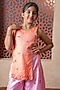 Featuring an orange kurta for girls in pure silk base with hand embroidery. It is paired with pink wide-legged flared palazzo pants. Style it with cute hair accessories and sandals for a festive occasion or wedding ceremony.