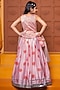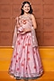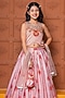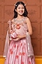 Peach Chanderi & Silk Modal Satin Floral Printed Lehenga Set For Girls