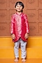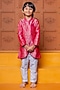 Pink Brocade Silk Embroidered Kurta Set For Boys