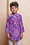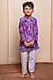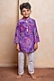 Purple Crepe & Cotton Silk Floral Printed Kurta Set For Boys