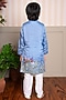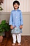 Featuring a sky blue kurta for boys in silk and cotton silk base with floral embroidery. It is paired with white pyjama pants. Style it with juttis and a watch for a festive occasion.